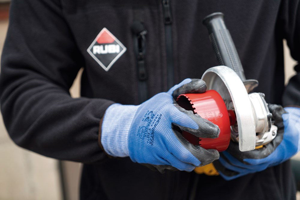 De DRYGRES PREMIUM reeks diamantboren is perfect voor het boren van alle soorten tegels, vooral porcellanato, en andere steenachtige soorten zoals marmer en graniet.RUBI heeft de VACUUM BRAZED-technologie van vacuüm solderen gebruikt in de DRYGRES PREMIUM reeksboren, die hogere temperaturen door wrijving te weerstaan. Hierdoor ontstaat een hogere standtijd van de diamantboren.DRYGRES PREMIUM diamantboren, met diameters Ø 6 tot 12 mm, zijn perfect voor het bevestigen van badkameraccessoires of elk type decoratie-accessoire op betegelde oppervlakken. De overige diameters van het DRYGRES PREMIUM diamantborenassortiment, van Ø 20 tot 85 mm, zijn vooral ontworpen om de tegelzetter de beste resultaten te bieden bij het boren van stopcontacten, buizen, afvoeren, verlichting, enz.DRYGRES PREMIUM diamantboren zijn droog geslepen en kunnen dankzij hun M14 schroefdraadaansluiting rechtstreeks op een haakse slijper of via een adapter (ref. 05976) op een boormachine – zonder klopfunctie – gebruikt worden.De gemiddelde levensduur van de DRYGRES PREMIUM diamantboren varieert naargelang de diameter: die van Ø 6 tot 12 mm hebben een gemiddelde levensduur van 60 gaten en voor de boren van Ø 20 tot 85 mm is dat 150 gaten.De gemiddelde levensduur van de boren hangt ALTIJD af van het soort materiaal, de dikte en de juiste koeling en gebruik.De boordiepte van de DRYGRES PREMIUM diamantboren bedraagt 30 mm voor boren van Ø 6 tot 35 mm en 38 mm voor boren van Ø 43 tot 85 mm.In de diameters Ø 6, 8, 10 en 12 mm bevatten de PREMIUM DRYGRES binnenin wax. Deze wax smelt tijdens het gebruik van de boor en vergemakkelijkt het afkoelen en evacueren van het boorgruis (Als de wax opraakt, kan de boor gewoon verder gebruikt worden. Slechts het totale verlies van de diamant geeft het einde van de levensduur van de boor aan).De DRYGRES PREMIUM diamantboren (diameters Ø 20 tot 85 mm) hebben een zijdelingse opening die de afkoeling van de boor verbetert en het ons gemakkelijker maakt om na elk boorgat de boorkern te verwijderen. Alvorens een nieuw gat te boren, moeten we er zeker van zijn dat de boor schoon is. Boren vanaf Ø 43 mm zijn gesegmenteerd om de stabiliteit tijdens het boren te verbeteren.De maximale gebruikssnelheid voor DRYGRES PREMIUM diamantboren is 14.000 rpm.Voor een betere afwerking en een langere levensduur van de boor is het belangrijk om het juiste toerental te respecteren en een licht pendelende beweging te maken tijdens het boren.