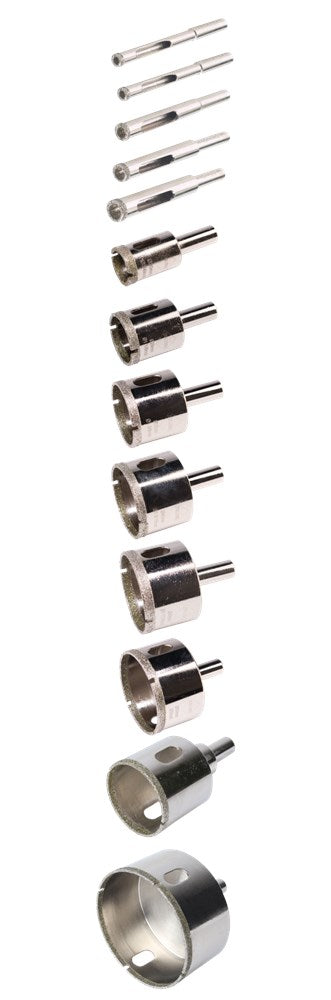 De EASYGRES diamantboren zijn aanbevolen voor het boren van alle soorten tegels en andere wand of vloermaterialen zoals marmer en graniet.De EASYGRES diamantboren serie is gemaakt voor natboren en kan alleen aangesloten worden op een boormachine.De EASYGRES diamantboren in diameters van 6 tot en met 12 mm, perfect voor het installeren van badkameraccessoires en moet altijd watergekoeld worden gebruikt in combinatie met de EASYGRES geleider. Hiermee kan de gebruiker gecentreerd boren, krijgt de boor de juiste koeling en zal de beste afwerking verkregen worden.De EASYGRES diamantboren van 20 tot en met 120 mm, zijn bedoeld om de beste resultaten te krijgen bij het uitvoeren van de noodzakelijke boren voor waterleidingen, waterafvoer, elektrische aansluitingen, enz.De gemiddelde levensduur van de EASYGRES diamantboren is afhankelijk van de diameter, 6 tot en met 12 mm heeft een gemiddelde levensverwachting van 10 gaten en bij de 20 tot en met 120 mm is de gemiddelde levensverwachting is 25 gaten. De gemiddelde levensduur van de boren is altijd afhankelijk van het soort materiaal, de dikte, de koeling en de toepassing.De boordiepte van EASYGRES boren is 25 mmDe EASYGRES diamantboren hebben een zijopening die de koeling van de boor verbetert en dit zorgt er ook voor dat de resten na het boren makkelijker verwijderd kunnen worden uit de boor. Voordat de boor nogmaals gebruikt gaat worden moeten alle resten uit de boorkop verwijderd zijn..De aanbevolen snelheid van de EASYGRES diamantboren is tussen de 400 en 1000 rpm. Dit is afhankelijk van het te boren materiaal.Voor een betere afwerking en langere duur van de boor, is het belangrijk om de geadviseerde rotatiesnelheid aan te houden en om met de boor een draaiende beweging te maken tijdens het boren.
