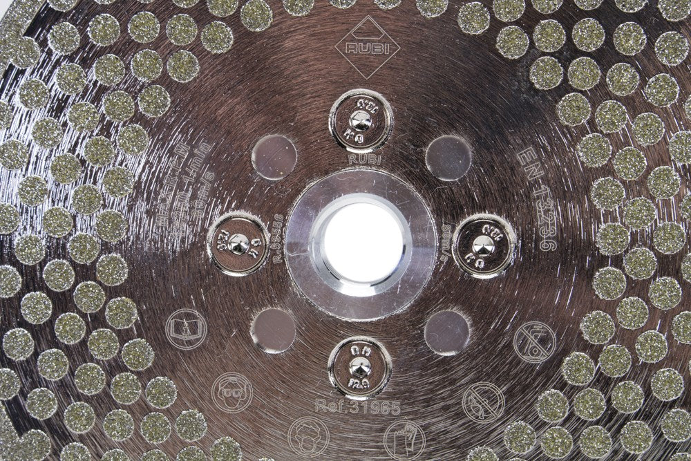 RUBI bewijst met dit diamantzaagblad weer zijn veelzijdigheid. De ECD is een zaagblad dat perfect twee functies combineert: zagen én schuren. De ECD is dus 2 diamantschijven in 1!Het diamantzaagblad is geschikt voor het zagen en schuren van meerdere materialen zoals marmer, gasbeton, gips, terrazzo, PVC, kunststof en composiet, maar bij uitstek geschikt voor porselein en keramiek. Het blad heeft een dubbelzijdige diamantkant om te kunnen slijpen op zowel het binnen- als buitenoppervlak.Het zaag- en schuurblad ECD is perfect voor het aanpassen en slijpen van sneden. Op deze manier biedt RUBI de gespecialiseerde vakmensen een veelzijdig en effectief hulpmiddel voor een beter eindresultaat en daarbij ook tijdwinst.Deze diamantzaagbladen zijn het antwoord op de bestaande behoefte in de markt; het aanbieden van één product voor zowel het zagen van alle soorten keramische materialen en natuurstenen, als voor het bewerken van tegels zoals zoeten en het maken van verstekken.Het blad is doorlopend galvanisch om zo bij gebruik minder trillingen te ervaren. Dit maakt dat de ECD een uitstekende keuze is bij het werken met matrialen met een hoog breukrisico.Binnen het assortiment diamantschijven biedt RUBI de professionele kwaliteit van twee schijven: PRO en SUPERPRO. PRO-schijven bieden de professionele gebruiker de beste verhouding tussen prestaties en prijs. SUPERPRO-schijven zijn de geschiktste optie voor de meest veeleisende taken.