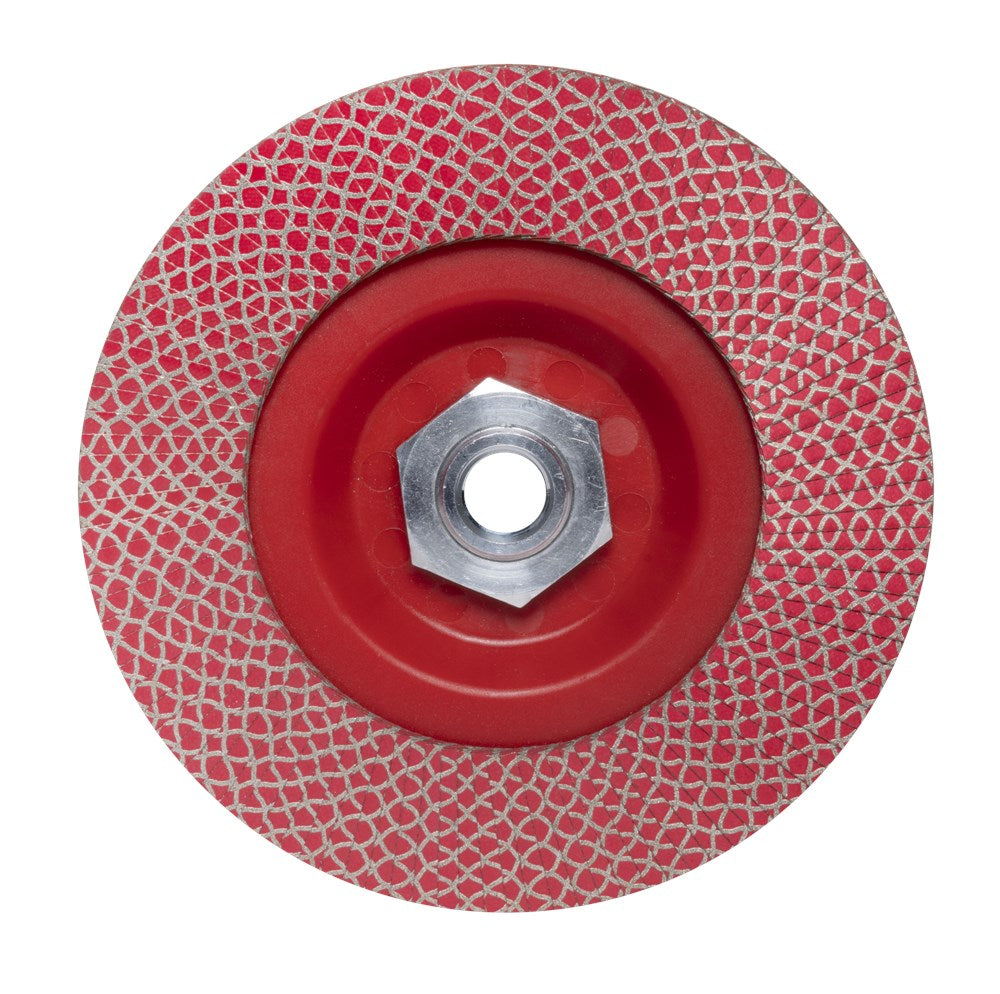 Het assortiment FLAP DISCS (lamellenschijven) wordt speciaal aanbevolen voor het slijpen van keramische tegels, porcellanato, gesinterde steen en natuursteen. Deze bladen zijn sterk aanbevolen voor het slijpen van randen en kleine oppervlakken, dus uitstekend geschikt voor het uitvoeren van verstekken en facetten met de haakse slijper. FLAP DISCS zijn uitgevoerd met een aluminium adapter met M14 koppelschroefdraad, die rechtstreeks op de uitgaande as past van iedere haakse slijper. Deze aluminium adapter zorgt voor minder trillingen en een betere stabiliteit tijdens het werk.Het gamma FLAP DISCS is beschikbaar in twee diameters: 115 mm en 125 mm en elk in verschillende korrelgroottes om zowel een adequaat slijpproces als de beste eindafwerking te garanderen. De beschikbare korrelgroottes zijn: - #50/60 - Voor het eerste en meer agressieve opruwen. - #100/120 - Voor het medium opruwen. - #200 - Voor de perfecte afwerking.De maximale aanbevolen gebruikssnelheid is 10.500 rpm (diameter 115 mm) en 9.650 rpm (diameter 125 mm).