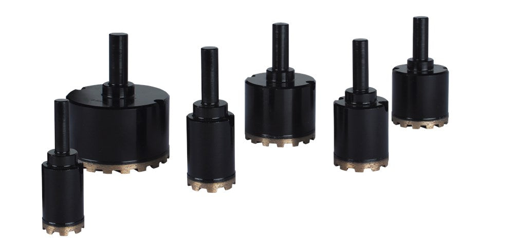 De FORAGRES serie van de diamantboren zijn aanbevolen voor het boren van alle soorten tegels en andere wand- of vloermaterialen zoals marmer en graniet.Verkrijgbaar in verschillende diameters van 20 tot en met 120 mm. Ze zijn perfect voor het maken van gaten in de tegel.De FORAGRES serie diamantboren zijn bedoeld om de beste resultaten te krijgen bij het uitvoeren van de noodzakelijke boren voor waterleidingen, waterafvoer, elektrische aansluitingen, enz.De diamantrand van FORAGRES boren is aan de metalen boor bevestigd door een verstevigde las.MINIGRES diamantboren moeten altijd worden gekoeld met water en kan alleen aangesloten worden op een boormachine.Het gebruik van de MULTIDRILL geleider (ref. 50944) wordt aanbevolen tot een diameter van 83 mm. Voor het boren van gaten van meer dan 84 mm in diameter, wordt de FORAGRES geleider aanbevolen (ref. 50900).De gemiddelde levensduur van de FORAGRES diamantboren is 60 gaten en is altijd afhankelijk van het soort materiaal, de dikte, de koeling en de toepassing.De boordiepte van de FORAGRES diamantboren is 30 mm (33 mm voor diameters van 55 en 75 mm).De MINIGRES diamantboren hebben geen opening voor het afvoeren van afval, zorg er altijd voor dat de boor schoon en vrij van restafval is.De maximumsnelheid voor het gebruik van FORAGRES diamantboren is 900 rpm, behalve bij diameters van 100 en 120 mm, waarvan de maximumsnelheid 450 rpm is.Voor een betere afwerking en langere levensduur van de boor, is het belangrijk om de juiste rotatiesnelheid aan te houden en matige druk uit te oefenen tijdens het boren.