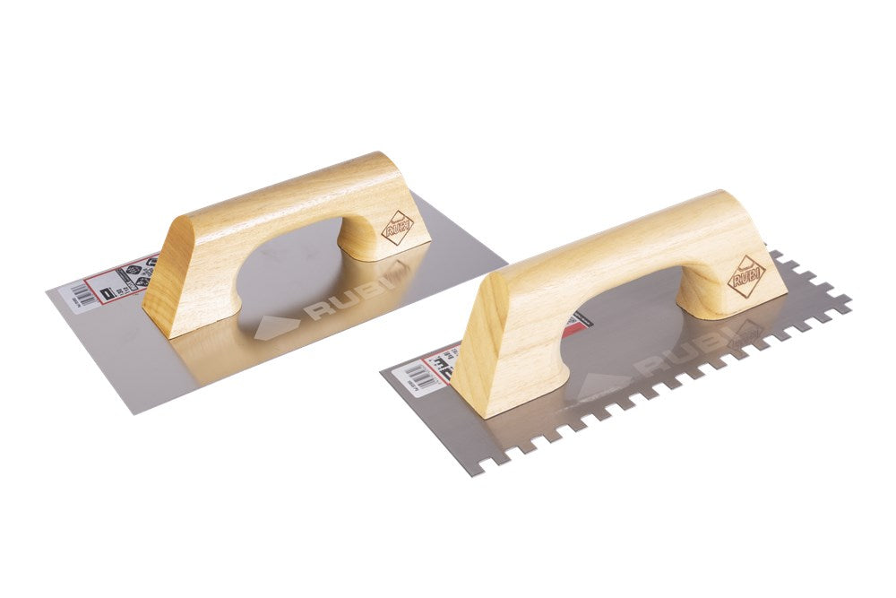 De spanen en gekerfde spanen met gesloten houten handgrepen hebben een speciale hoge slijtvaste stalen plaat en corrosiebescherming met kleurloze lak. (STAAL).Er zijn ook modellen met een speciale hoge slijtvaste roestvrij stalen plaat.Een van de kenmerken van alle RUBI troffels en inkeping troffels is de perfecte vlakheid van de plaat.De spanen en gekerfde spanen met houten handgrepen bieden professionele tegelzetters een traditionele handgreep met het zachte gevoel van natuurlijk hout, dankzij een volledige proces van frezen, schuren en lakken.Het gesloten handgreep zorgt voor een symmetrische gereedschap perfect voor gebruik door zowel rechtshandig en linkshandige mensen, terwijl we een gereedschap verstrekken dat gecentreerd is en gemakkelijker te controleren en te gebruiken.Het blad en steel zijn met elkaar verbonden door twee roestvrijstalen schroeven, voor een langere levensduur.Een ander aspect dat het RUBI assortiment spanen en lijmkammen onderscheid van de rest is het brede scala van modellen enafmetingen van de inkepingen.Bij de toepassing van lijmen voor de montage van keramische tegels, moet er altijd rekening gehouden worden met de open en hardingstijden van elke fabrikant.