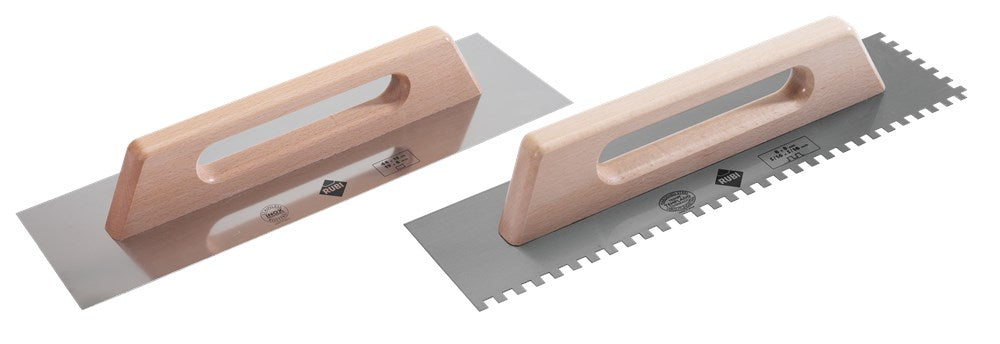 De troffels en gekerfde troffels met gesloten houten handgrepen hebben een speciale hoge slijtvaste stalen plaat en corrosiebescherming met kleurloze lak. (STAAL).Er zijn ook modellen met een speciale hoge slijtvaste roestvrij stalen plaat. Een van de kenmerken van alle RUBI troffels en inkeping troffels is de perfecte vlakheid van de plaat.De troffels en gekerfde troffels met houten handgrepen bieden professionele tegelzetters een traditionele handgreep met het zachte gevoel van natuurlijk hout, dankzij een volledige proces van frezen, schuren en lakken.Het gesloten handgreep zorgt voor een symmetrische gereedschap perfect voor gebruik door zowel rechtshandig en linkshandige mensen, terwijl we een gereedschap verstrekken dat gecentreerd is en gemakkelijker te controleren en te gebruiken.Het blad en steel zijn met elkaar verbonden door twee roestvrijstalen schroeven, voor een langere levensduur Een ander aspect dat het RUBI assortiment troffels en lijmkammen onderscheid van de rest is het brede scala van modellen en afmetingen van de inkepingen.De 20 x 20 mm vierkante inkepingen zijn ontworpen voor het doseren van cementgebonden keramische tegels lijm op ongelijke vloeren. Dit formaat maakt grotere dikte materiaal en zorgt voor een goede dekking van de keramische tegels, een essentiële factor voor grondige hechting.RUBI 48 cm troffels en gekerfd troffels zijn ideaal voor het installeren van grootformaat keramische tegels, want met een enkele applicatie is er meer werk oppervlak bedekt.Het merk RUBI staat bekend om de grote duurzaamheid en de kwaliteit van de gereedschappen. Al meer dan 65 jaar, heeft RUBI alleen vervaardigde producten van hoge duurzaamheid en kracht, om de beste prestaties in de zwaarste werkomstandighedente geven en aan te passen aan de eisen van elke markt.