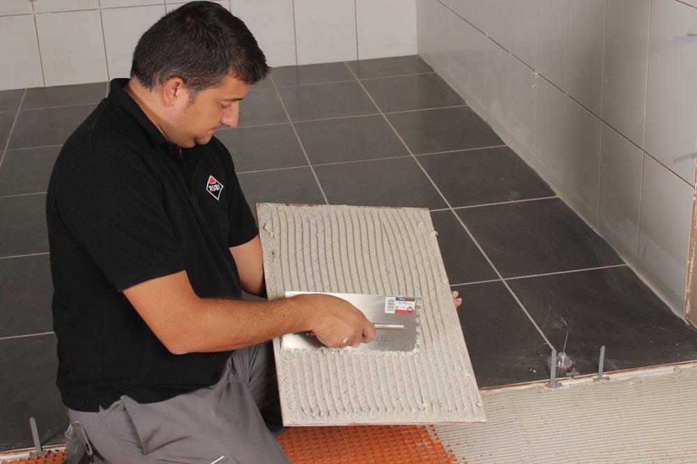 De troffels en gekerfd troffels met open RUBIFLEX handgrepen hebben een extreem lichtgewicht en aluminium versterking.De versterking en de plaat zijn zeer vast bevestigd door middel van drukbouten die eenmaal gemonteerd zijn onmogelijk te verwijderen zonder dat het effect heeft op de unitaire karakter van het gereedschap.De troffels en gekerfd troffels met open RUBIFLEX handgrepen hebben een speciale hoge slijtvaste stalen plaat en corrosiebescherming met kleurloze lak. (STAAL).Er zijn ook modellen met een speciale hoge slijtvaste roestvrij stalen plaat.Een van de kenmerken van alle RUBI troffels en inkeping troffels is de perfecte vlakheid van de plaat.Alle modellen van troffels en gekerfd troffels in deze reeks hebben de exclusieve RUBIFLEX ergonomische handgreep met twee texturen. Een zeer ergonomisch handgreep met een verhoogde grip.Troffel en lijmkam modellen met open handgrepen vergemakkelijken controle bij het aanbrengen van materiaal. Een van de voordelen die professionele tegelzetter vinden aan dit type handgreep, dankzij zijn opening, kan het gereedschap worden opgehangen aan de rand van de bak, kuip of een andere voorwerp waarin het aan te brengen materiaal zit. Hiermeekunt u de troffel of lijmkam ten allen tijde handig en schoon houden.Een ander aspect dat het RUBI assortiment troffels en lijmkammen onderscheid van de rest is het brede scala van modellen en afmetingen van de inkepingen.Bij de toepassing van lijmen voor de montage van keramische tegels, moet er altijd rekening gehouden worden met de open en hardingstijden van elke fabrikant.Daarnaast, als onderdeel van de strategie, wordt bij RUBI continu onderzoek gedaan op basis van de evolutie van de gereedschappen en op basis van de eisen van de door toonaangevende keramische tegel fabrikantenwereldwijd, 30.000 RUBI dealers en meer dan 40.000 eindgebruikers die geregistreerd zijn bij de RUBI club. Als gevolg van al deze factoren, biedt RUBI professionele tegelzetters de meest uitgebreide en geschikt bereik van tools op de markt. Alles wat je nodig hebt voor alle fasen van de verwerking van keramische tegels.