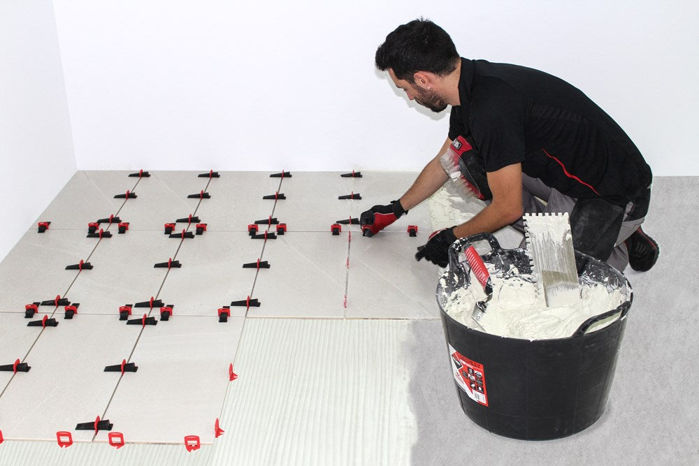 De belangrijkste functie van het DELTA tegel leveling van RUBI is het vermijden van tegel-tot-tegelvoegen bij de plaatsing van keramische tegels, zowel op de vloer als op de muur.Het DELTA nivelleringssysteem voorkomt ook dat de tegels tijdens het uitharden van de lijm bewegen.Het basisprincipe van het DELTA LEVEL systeem is om het hoogste deel aan te drukken tot de positie gelijk is aan de aangrenzende tegels, waardoor een aanzienlijke verbetering van de vlakheid van het oppervlak wordt verkregen.Het DELTA systeem van RUBI is een systeem van clips en keggen, aanbevolen voor formaten van 30x30 cm of groter en voor tegeldiktes tot 12, 15 of 20 mm, afhankelijk van de gebruikte clip.Het gebruik van het systeem is snel, eenvoudig en intuïtief. Na de installatie worden de elementen van het systeem verwijderd door middel van een zijwaartse beweging (schop of stoot), waarbij de clips in de richting van de voeg worden geslagen.De keggen van het DELTA nivelleersysteem kunnen meerdere malen worden hergebruikt.De DELTA LEVEL SYSTEM FAST-FIX tang van RUBI is ontworpen om zowel horizontaal (op vloeren) als verticaal (op wanden) te worden gebruikt. De belangrijkste functie van de tang is om de keg de nodige druk te geven om de tegel te nivelleren en zo een homogene vlakheid te verkrijgen.