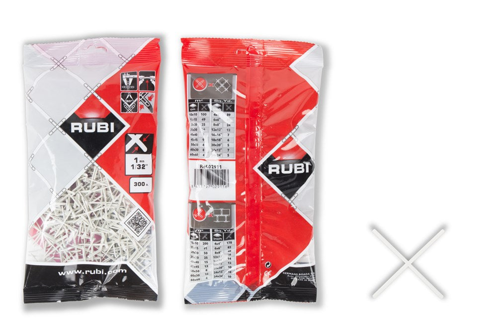 De RUBI tegelvoegkruisjes vormen zonder twijfel een echt onmisbaar hulpmiddel voor het verkrijgen van een perfecte afwerking bij de plaatsing van keramische tegels.RUBI vervaardigt de tegelvoegkruisjes uit hoogwaardig basismateriaal en daarom hebben zij geen enkele vorm van onvolkomenheden of bramen.De 1, 1,5, 2 en 3 mm voegafstandhouders worden aanbevolen voor het plaatsen van keramische wand- en vloertegels met een minimale voeg. De solide structuur van de 1, 1,5, 2 en 3 mm tegelkruisjes is ontworpen om meer weerstand te bieden tegen buigen. Deze eigenschappen maken de 1, 1,5, 2 en 3 mm tegelvoegkruisjes zeer aan te bevelen voor grootformaat keramische tegels.De L (lange) versies van de 2 en 3 mm tegelvoegkruisjes zijn perfect voor zowel wand- als vloertegels, met name grote gerectificeerde keramische tegels met een fijne voeg.De interne geometrie van de 3 mm lange en 4 mm lange tegelvoegkruisjes is ontworpen om meer weerstand te bieden tegen buigen. Deze eigenschappen maken de 3 mm lange voegkruisjes zeer aan te bevelen voor grootformaat keramische tegels.De interne geometrie van de tegelvoegkruisjes voor 5 tot 12 mm voegen is hol en heeft een inwendig versterkt ontwerp waardoor ze bestand zijn tegen spanningen. Dit holle ontwerp vergemakkelijkt de invoer van de voegmortel en laat, als het type werk dit toelaat, het kruisje in de tegel-tot-tegelvoeg achter zonder dat dit de integriteit van de voeg in de toekomst aantast.De versterkte 5 mm tegelvoegkruisjes van RUBI zijn stijvere kruisjes, speciaal ontworpen voor gebruik in grootformaat tegelvloeren. De onderzijde van de versterkte 5 mm kruisjes is zo ontworpen dat ze goed in het voegmateriaal passen en dat het voegkruisje, als het type werk het toelaat, binnen de tegelvoeg kan blijven zonder de integriteit van de voeg in de toekomst aan te tasten.De RUBI tegelvoegkruisjes onderscheiden zich door de regelmatigheid van hun productie, de homogeniteit van de metingen en de afwezigheid van bramen en andere kleine gebreken. Met deze eigenschappen kunnen de professionals die vertrouwen op RUBI tegelvoegkruisjes, T-stukken en keggen een uitstekende afwerking verkrijgen met totale precisie.