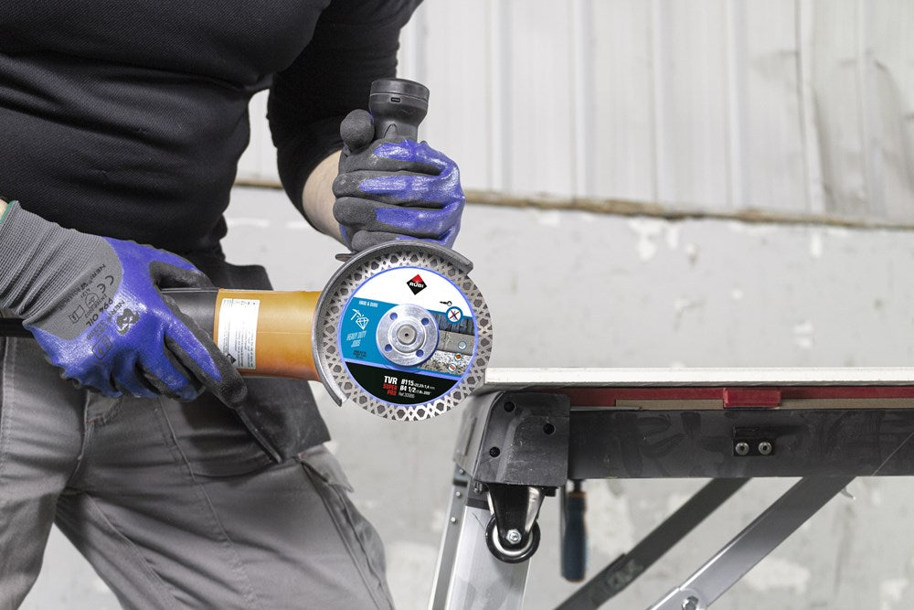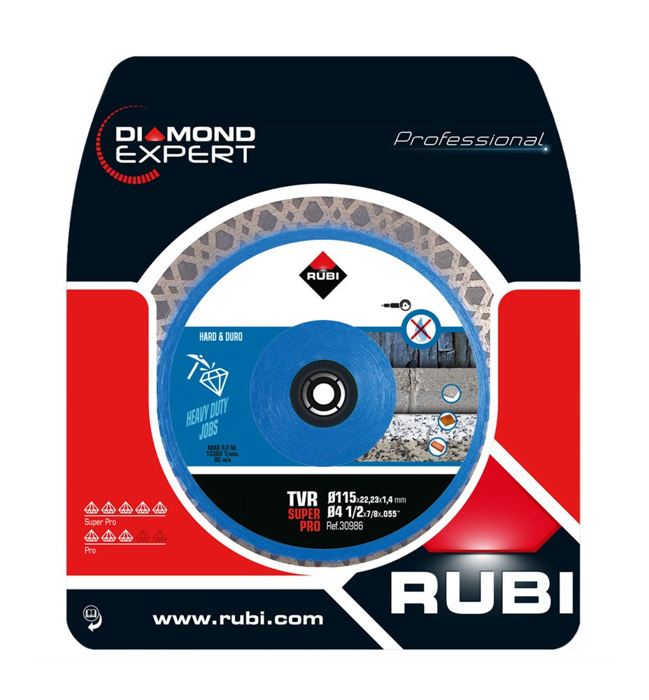 Het TURBO VIPER - TVR SUPERPRO diamantzaagblad wordt aanbevolen voor het droog zagen van harde materialen zoals: graniet, rustiek steengoed, klinker, vuurvaste materialen, leisteen en porcellanato.Het specifieke ontwerp van de diamantkroon van de RUBI TVR diamantschijf biedt de professionele gebruiker meer snelheid en weerstand bij het zagen van de hardste materialen, zonder dat dit ten koste gaat van de kwaliteit van de afwerking.Dit specifieke diamantschijfje combineert al het goede van een TURBO blad, met de voordelen van een diamantkroon die speciaal ontworpen is om de zaagspanningen te verminderen en de kwaliteit van de afwerking te verbeteren.De centrale versterking in de staalkern van het TVR SUPERPRO diamantzaagblad zorgt voor een grotere buigvastheid.Net als het overgrote deel van de diamantschijven gebruikt RUBI de lasertechnologie om de diamantkroon te verbinden met de stalen kern van het blad in het TVR SUPERPRO zaagblad.Laserlassen is de grootste garantie voor kwaliteit en veiligheid bij de productie van diamantschijven.Binnen het diamantschijvenassortiment biedt RUBI twee professionele zaagbladen aan: PRO en SUPERPRO.PRO zaagbladen bieden de professionele gebruiker de beste verhouding tussen prestaties en prijs.SUPERPRO zaagbladen zijn de meest geschikte optie voor de meest veeleisende klussen.