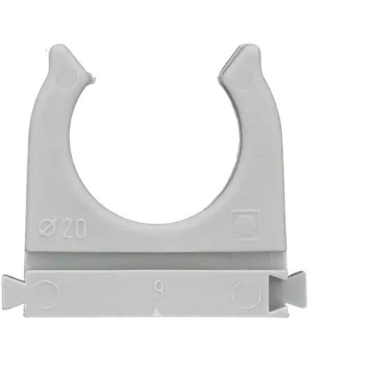 Set bevat: 100× kunststof E-clips Ø16mm voor snelle bevestiging van leidingen in elektrische en sanitaire toepassingen.