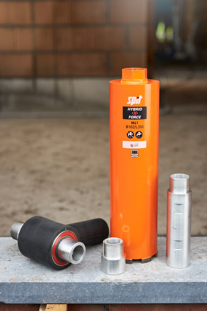 SPIT HYBRID-X-FORCE diamantboren, beschikbaar in diameters D42-D162, lengte 350mm, met M41-aansluiting, geschikt voor nat- en droogboren in beton en metselwerk.