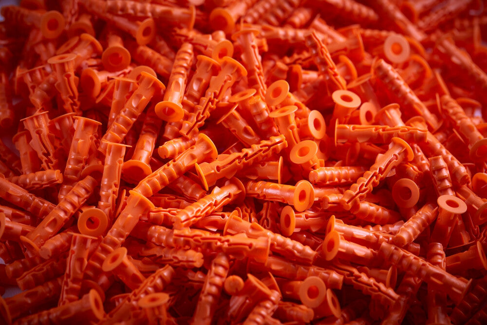 Emmer met 2000x hoogwaardige nylon pluggen, ideaal voor zware bevestigingen in massieve materialen zoals beton.